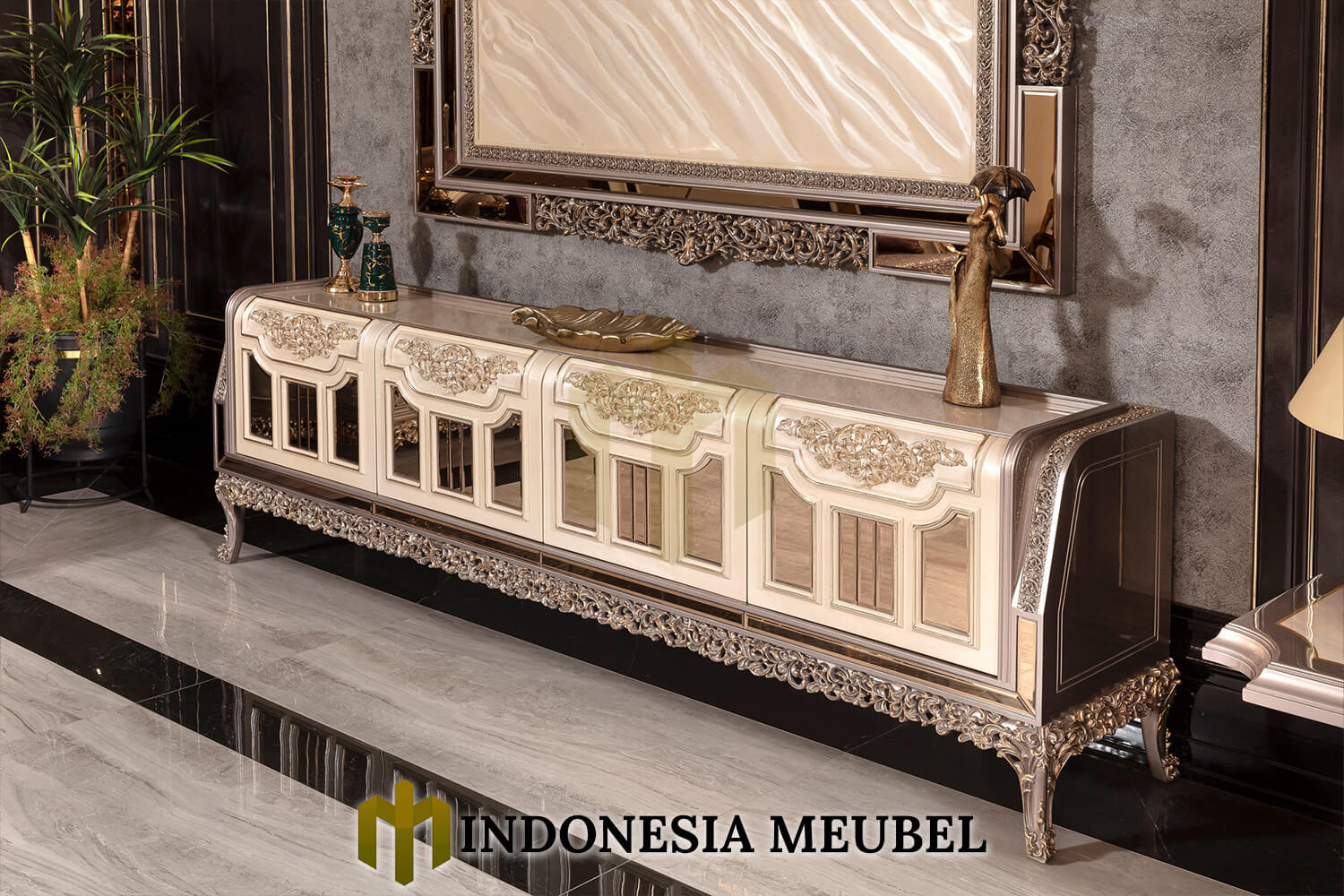 Harga bufet tv mewah jepara ukiran klasik ramadan sale IM-803 dengan desain yang menawan yang akan menambah indah ruang interior anda.