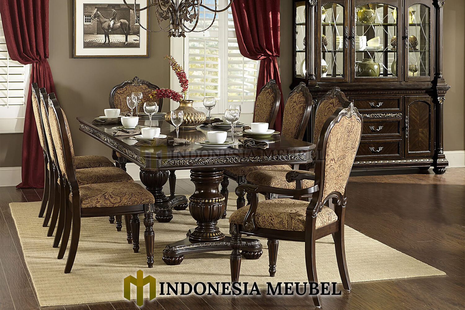 Meja makan mewah kursi 8 gretha natural dark color IM-668 dengan desain yang menawan yang akan menambah indah ruang makan anda.