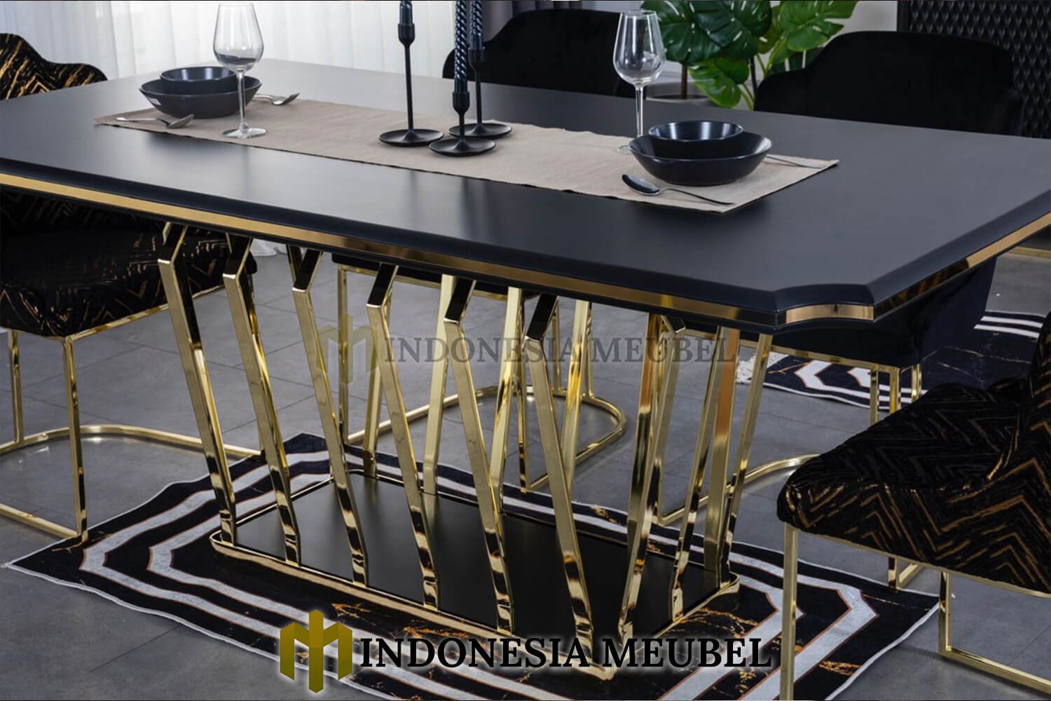 Meja makan minimalis mewah stainless luxury gold candy IM-215 dengan desain yang menawan yang akan menambah indah ruang makan anda.