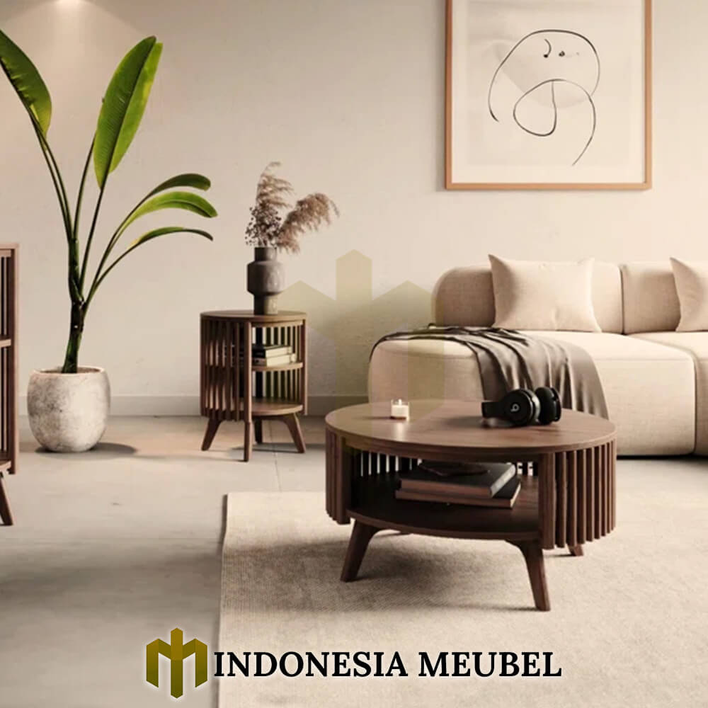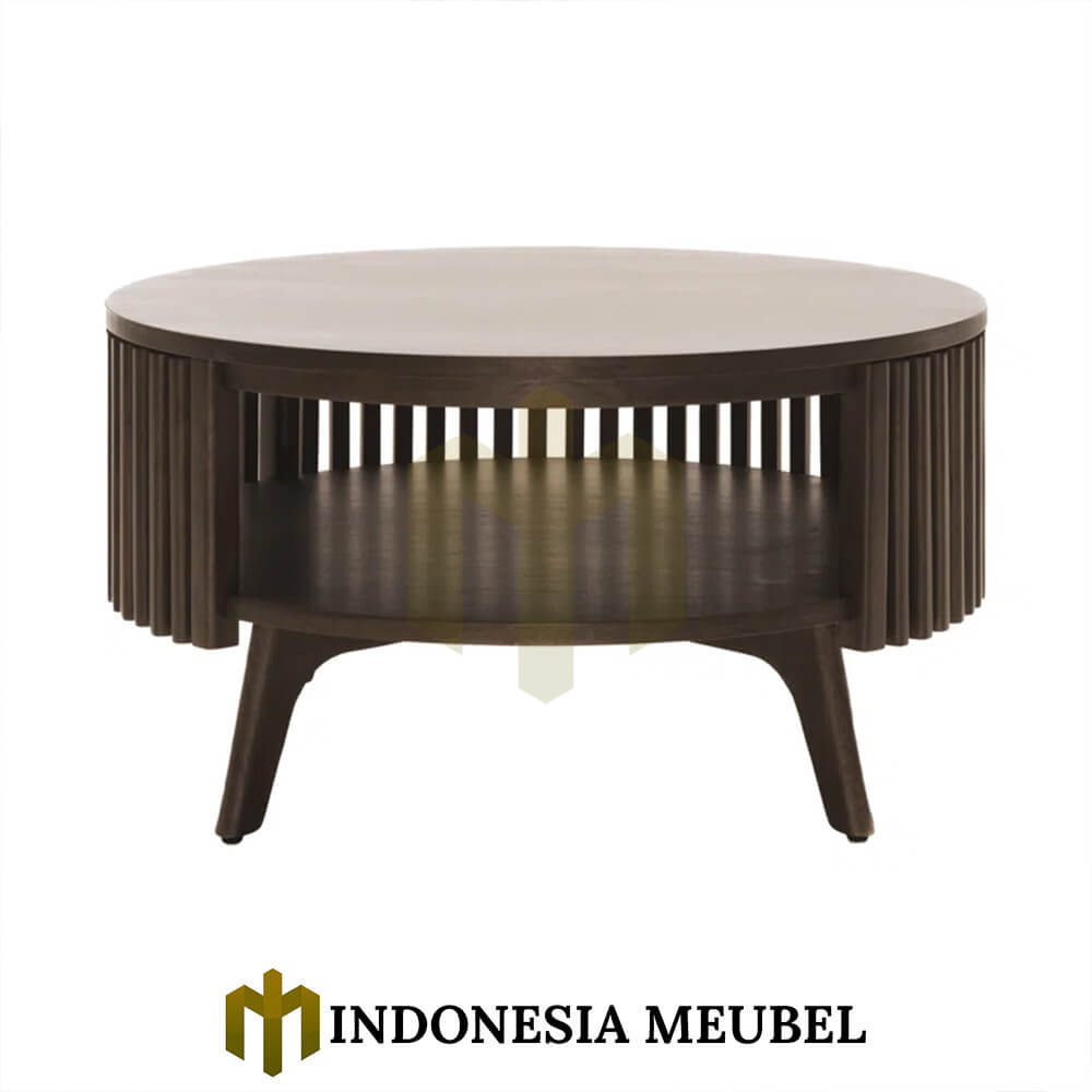 Meja tamu minimalis bundar jati natural color high quality IM-889 dengan desain yang menawan yang akan menambah indah ruang interior anda.