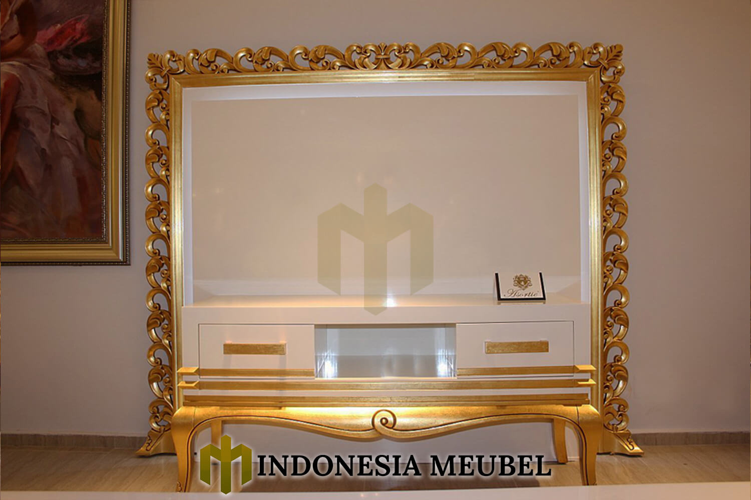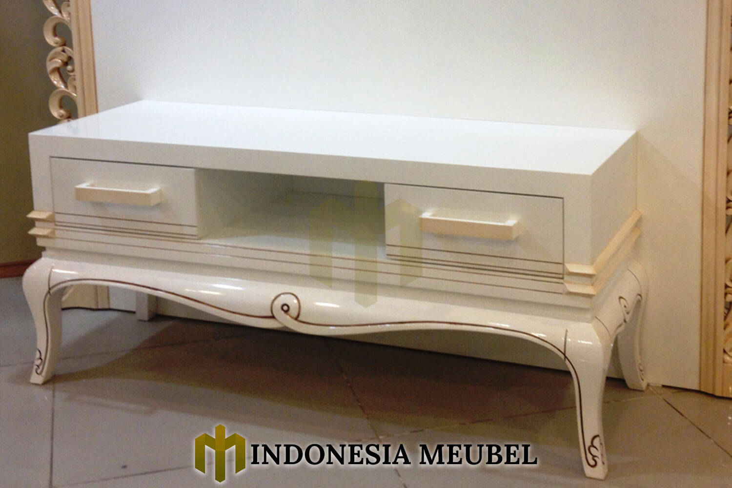 Meja tv mewah jepara solid duco combination furniture terbaru IM-852 dengan desain yang menawan yang akan menambah indah ruang interior anda.