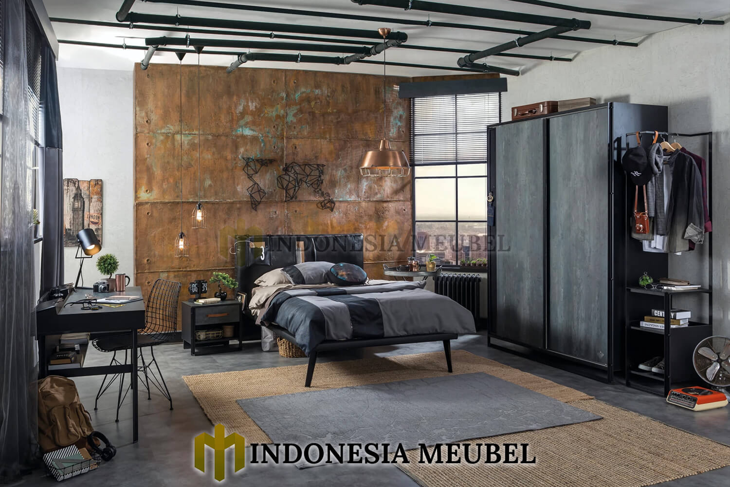 Tempat tidur anak minimalis modern new industrial style IM-494 produk dengan desain yang menawan yang akan menambah indah ruang interior anda.