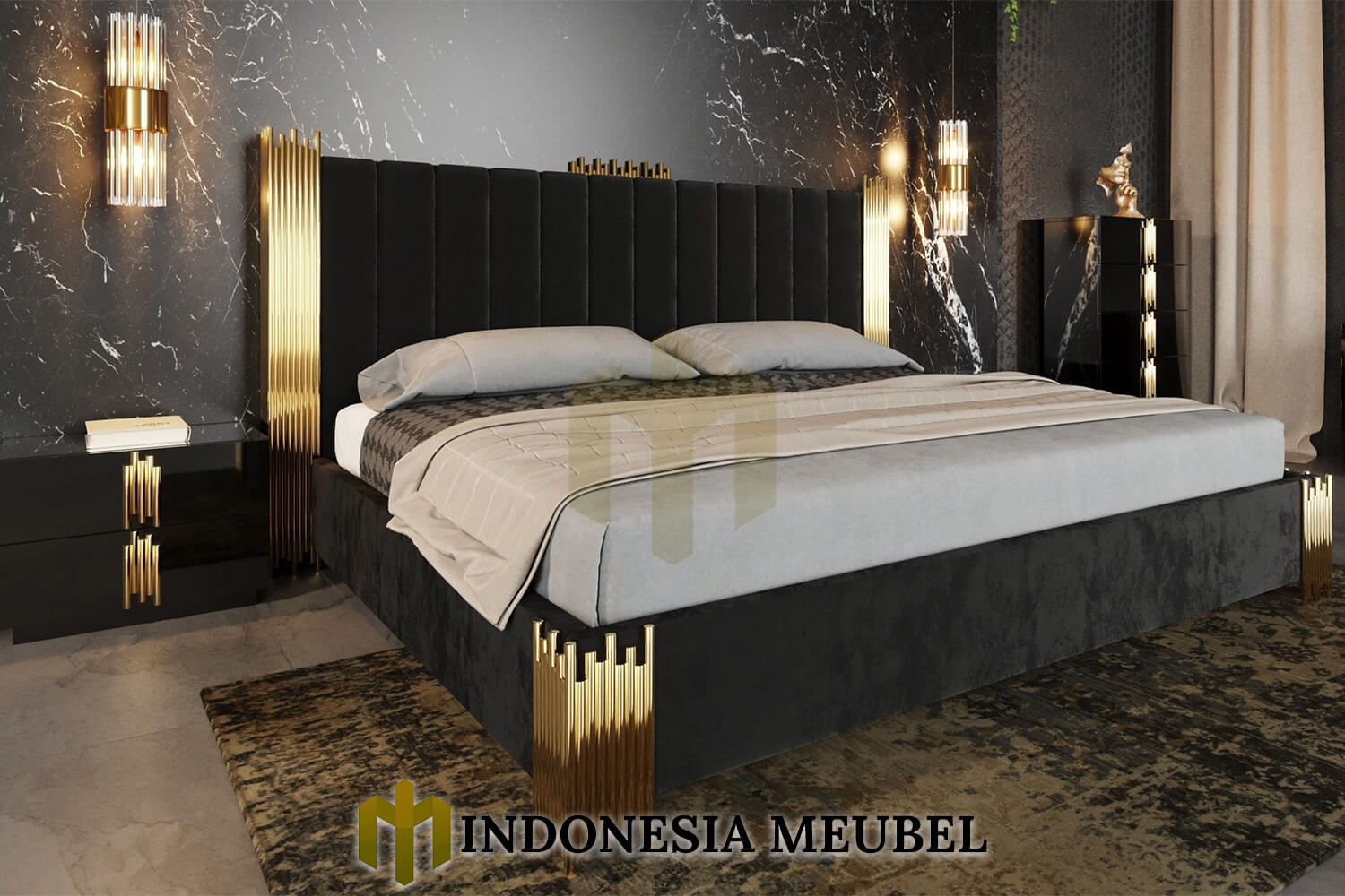 Tempat tidur minimalis modern foot stainless gold candy luxury IM-766 dengan desain yang menawan yang menambah indah bedroom anda.